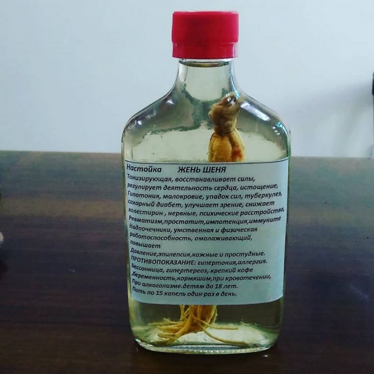 Чтобы приготовить настойку из сушеного корня женьшеня, ее необходимо предварительно измельчить. Затем возьмите тридцать граммов порошка и залейте литром водки или спирта. Напиток хранят в темном месте три-четыре недели и время от времени перемешивают. Через время настойку процеживают и используют для лечения или профилактики.