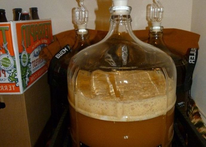 - Жидкость охлаждается до комнатной температуры и добавляется в брагу.