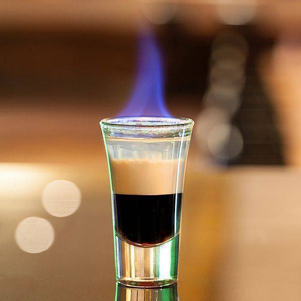 Состав классического коктейля не отличается от холодного Б-52 — берутся те же ингредиенты и заливаются в шот слоями в одинаковых пропорциях. Но здесь неопытный бармен может столкнуться с небольшой трудностью: чтобы поджечь спирт, его нельзя охлаждать. Так что моделировать уровни может быть сложнее. Здесь не обойтись без специальной барной ложки.