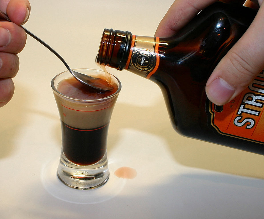 Суть в том, что в первую очередь в стопку наливается более густой ликер (кофе), чтобы остальные ингредиенты лучше удерживались на вас. Затем добавляется сливочный, он чуть менее густой и последний — апельсиновый.