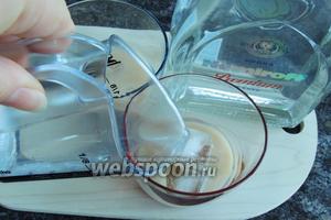В классическом виде кофейный ликер сначала переливается в стакан со льдом.