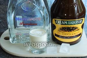 Если вы решили сделать более крепкую версию, увеличьте объем водки вдвое. Новичкам советую не делать полный стакан и ограничиться в сумме 100 мл. Берем по 50 мл водки и по 25 мл ликера и сливок.