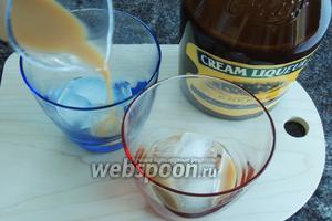 - Переливая полученный напиток в сервировочную посуду, вливаем сливки, затем ирландский крем. Желательно добавлять оба ингредиента медленно, стараясь равномерно распределить их по поверхности.