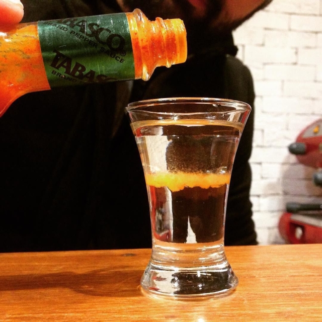 - по 20 мл Beefeater, ром Bacardi Carta Blanca, текила Silver, цитрусовые Triple Sec, кофейный ликер и водка;
