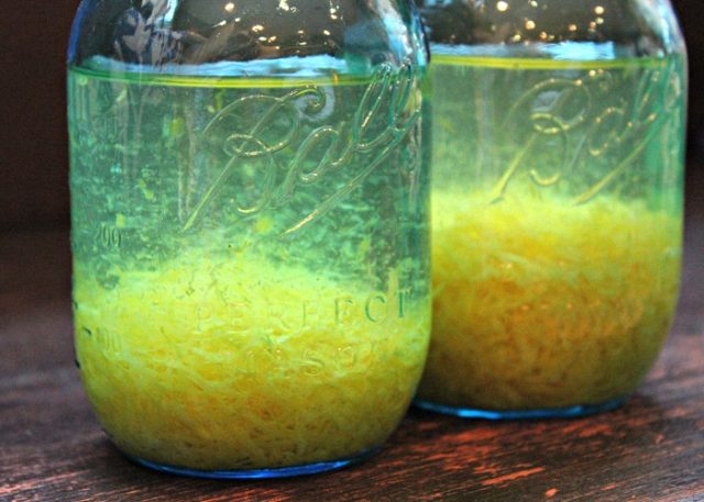 - Оставить на 2-3 дня. Когда краска станет ярко-лимонного цвета, процедите.