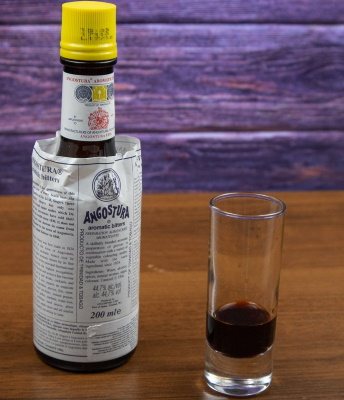 — Венесуэльская крепкая концентрированная спиртовая настойка (44,5%) на лечебных травах и корнях, специях, цедре цитрусовых. Отличается насыщенным цветом крепкого чая, сильным вкусом и ароматом, переплетающимся с нотами апельсина, мускатного ореха, гвоздики, кориандра, сандалового дерева. Этого компонента достаточно совсем немного — примерно 1-2 мл на порцию, иначе коктейль может получиться излишне острым.
