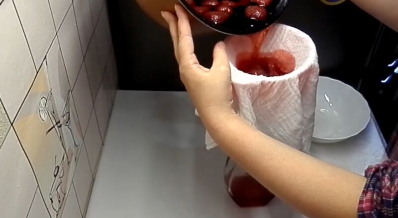 Теперь осталось процедить настойку через марлечку в подготовленные баночки или бутылки. Оставшиеся ягоды можно просто выкинуть или использовать для приготовления какой-нибудь выпечки.