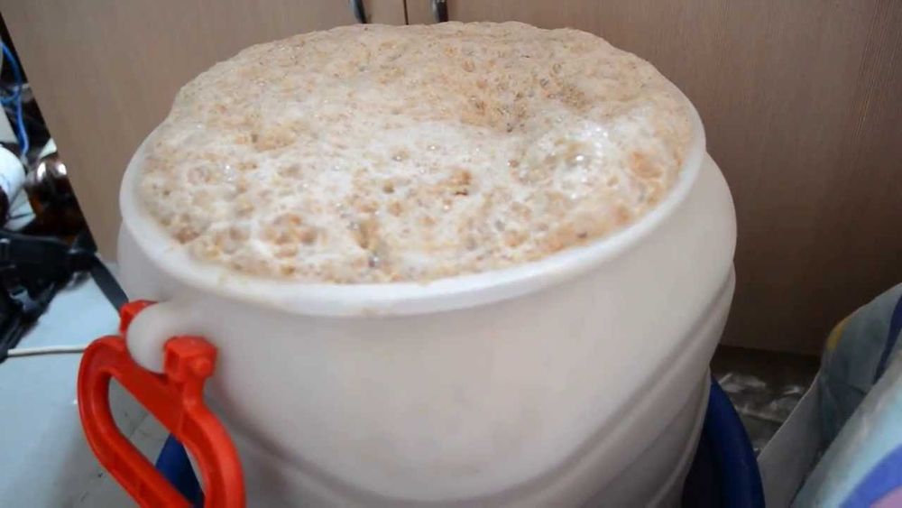 - Подогреваем воду до 30 градусов и выливаем в бродильную ёмкость (важно, чтобы одна четвертая ёмкости была свободна под выделения пены).