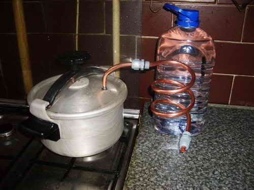 Чтобы исключить закипание браги. Первые 20 — 30 грамм самогона, «первачок», пить нельзя. В нём содержится яд — метанол. Да странно, раньше я тоже этого не знал. Этот метанол я сливаю в отдельную бутылку, потом использую для розжига углей.