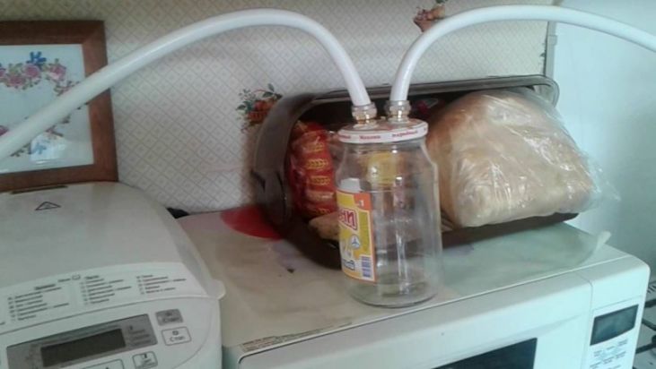 - За основу берется стеклянная банка емкостью 2-3 литра. У него должна быть завинчивающаяся крышка. Если для мытья вам требуется емкость объемом не более 20 литров, для барботера можно использовать емкость объемом не более одного литра.