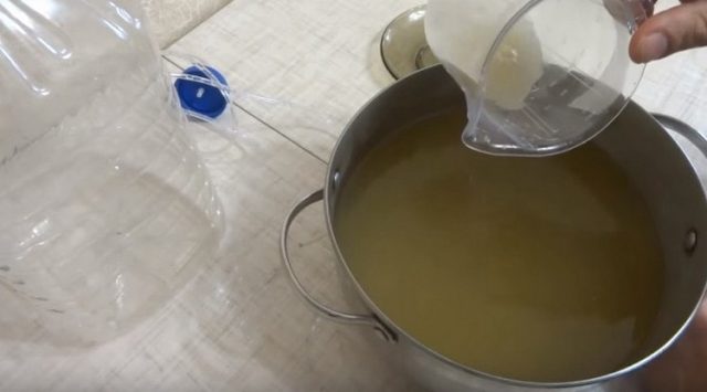 - Отфильтруйте жидкость через дуршлаг, удаляя мелкий мусор и насекомых.