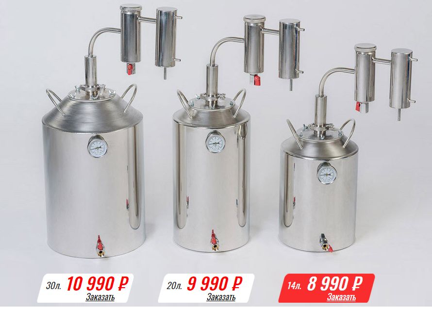 Цены варьируются от 5 до 15 тысяч рублей, причём до 10 тысяч можно купить очень достойный вариант с относительно большим перегонным кубом.