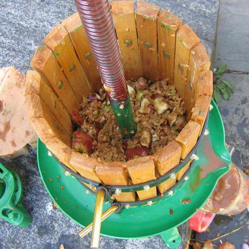 Если в хозяйстве нет соковыжималки, можно использовать и механическую терку (конечно, сам процесс будет более длительным и утомительным). Полученное таким образом яблочное пюре отжимают другим способом. Например, в сложенной в несколько слоев марле (помните, что это очень трудоемкий процесс) еще один вариант — кухонный пресс. В любом случае перед вами стоит вполне конкретная задача: взять торт на выходе и использовать его как сырье.
