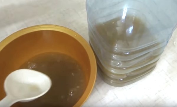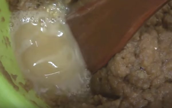 - Полученное пюре залейте холодной некипяченой водой так, чтобы у горлышка оставалось не менее 5-7 сантиметров: при брожении пена поднимется, так что уровень жидкости повысится. У вас должна получиться довольно жидкая каша.
