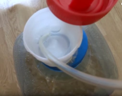 - Наполните емкость некипяченой водой, оставив немного места для брожения, чтобы вино не пролилось.